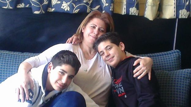مصدر الصورةMAJEDA KHOURYImage captionماجدة خوري مع ولديها هادي وكريملم ترغب ماجدة يوما في العيش في بريطانيا. وقبل الانتفاضة في بلدها كانت تتمتع بحياة مميزة، وتعمل مستشارة أطفال، وتدير مركزا لتعليم الأسرة.